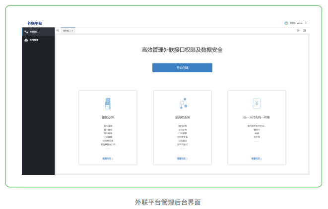 外聯(lián)平臺(tái)是將HIS、LIS等生產(chǎn)系統(tǒng)非標(biāo)準(zhǔn)化接口實(shí)施標(biāo)準(zhǔn)化,實(shí)現(xiàn)多個(gè)業(yè)務(wù)統(tǒng)一接入,集中管控,集 成開(kāi)發(fā),平臺(tái)化部署,是醫(yī)院對(duì)外信息交換和接口適配的信息樞紐,是連接醫(yī)院各個(gè)業(yè)務(wù)的中間層,作為 醫(yī)院外聯(lián)業(yè)務(wù)的統(tǒng)一出口,實(shí)現(xiàn)對(duì)各個(gè)業(yè)務(wù)接口對(duì)接。支持外聯(lián)插件的定制化同時(shí)提供插件開(kāi)發(fā)工具包, 讓醫(yī)院信息科人員在有需要時(shí),可自行開(kāi)發(fā)插件。