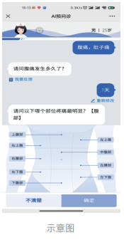 主要功能:患者信息自動(dòng)處理;患者口語(yǔ)化描述智 能識(shí)別;科室、癥狀性別沖突識(shí)別;文本、語(yǔ)音、點(diǎn) 選、滑輪等快捷輸入;專業(yè)詞匯圖文解釋;上傳檢驗(yàn)檢 查圖片,OCR智能識(shí)別;個(gè)性化科普宣教推送;用戶實(shí) 時(shí)反饋。